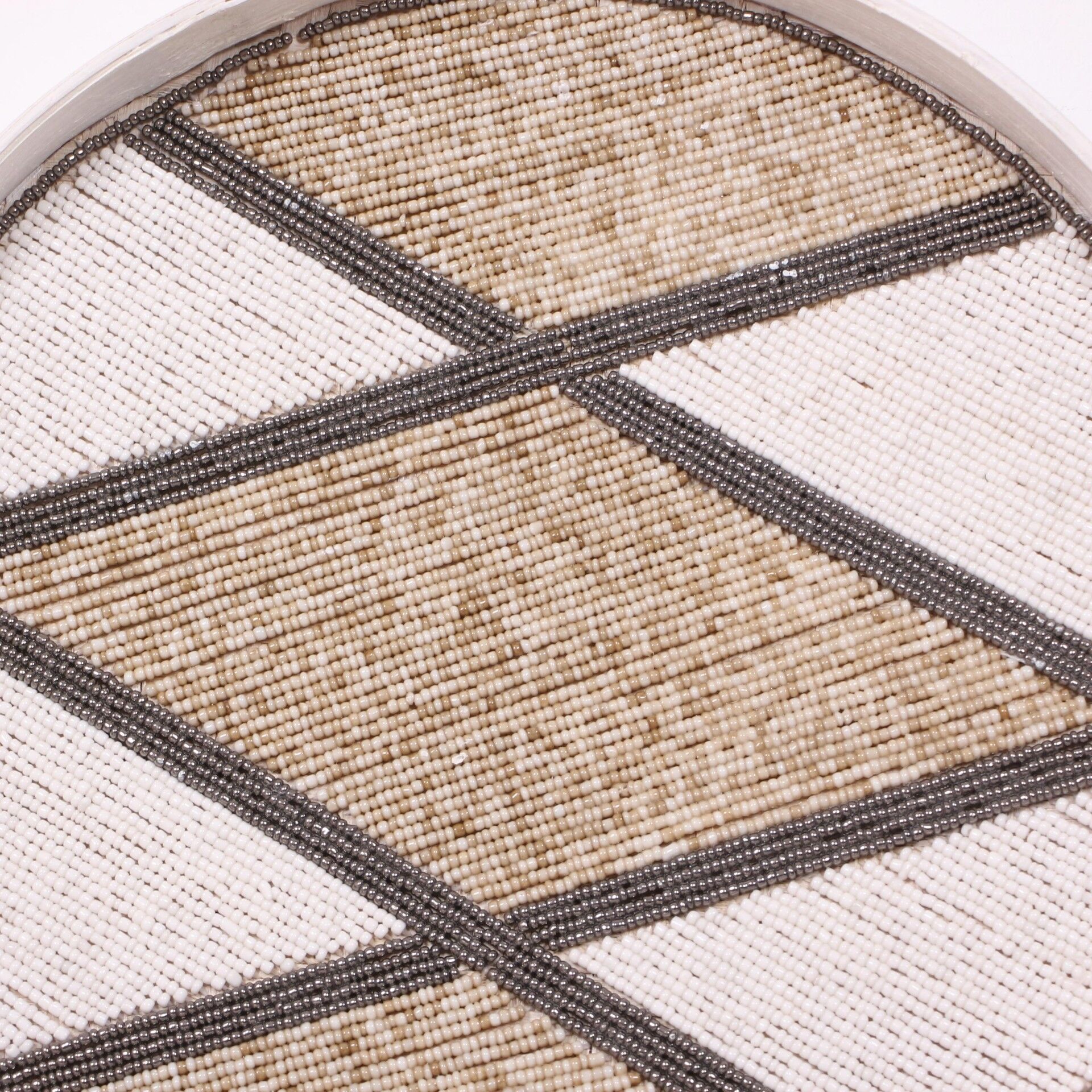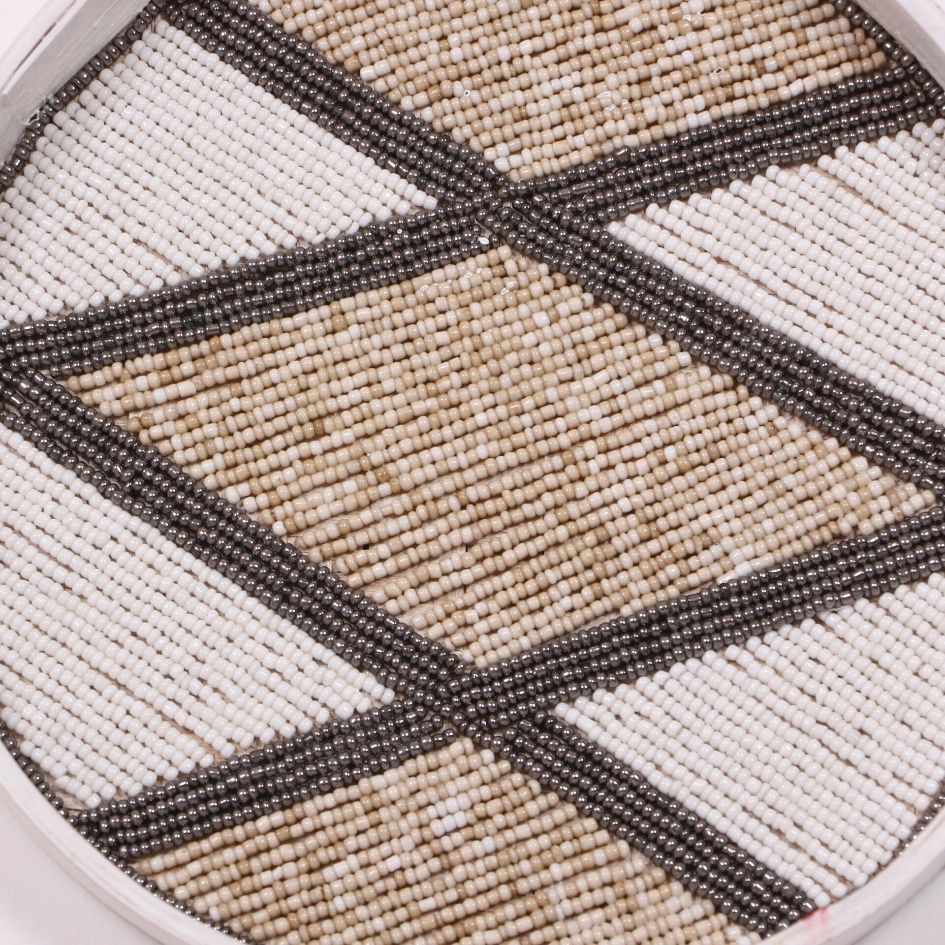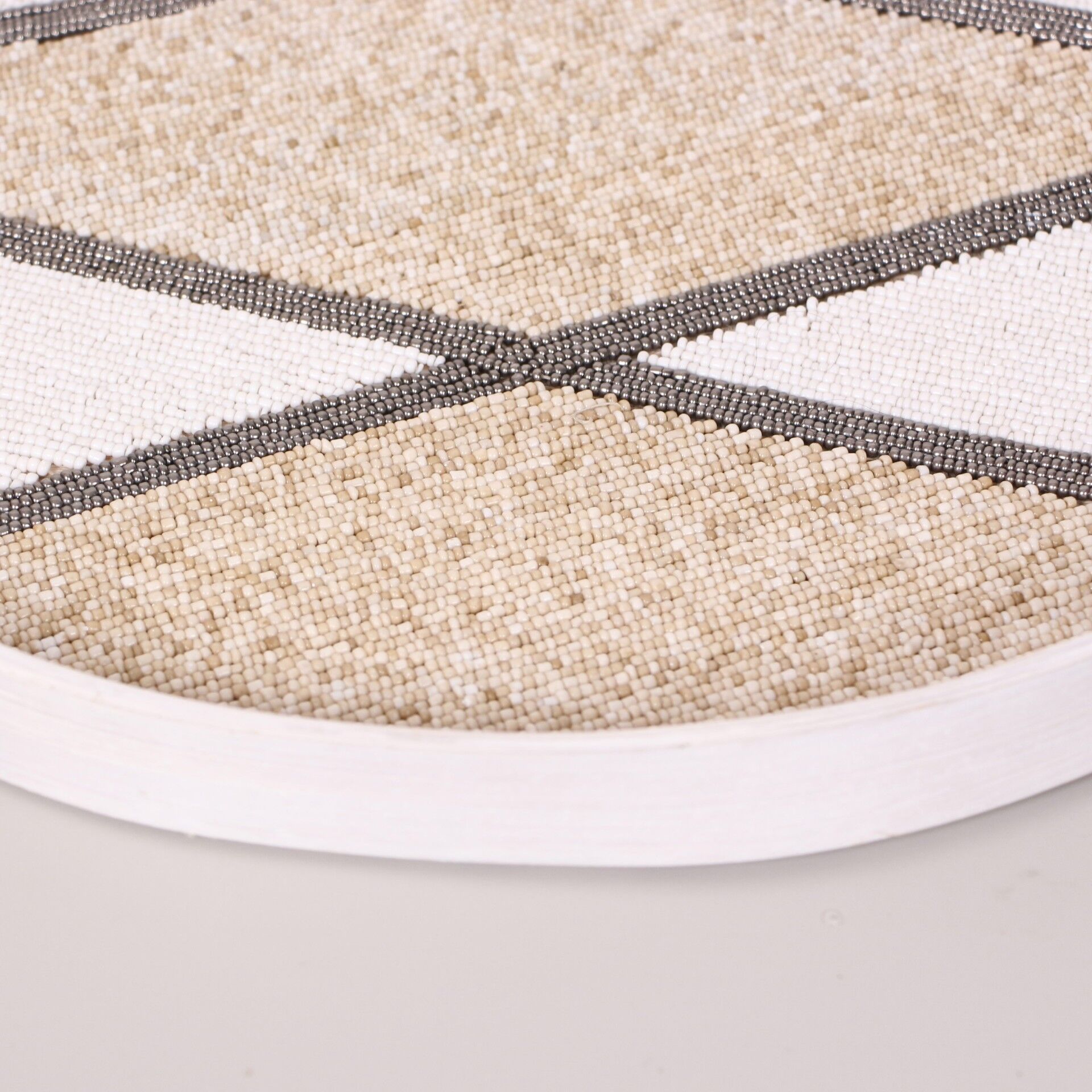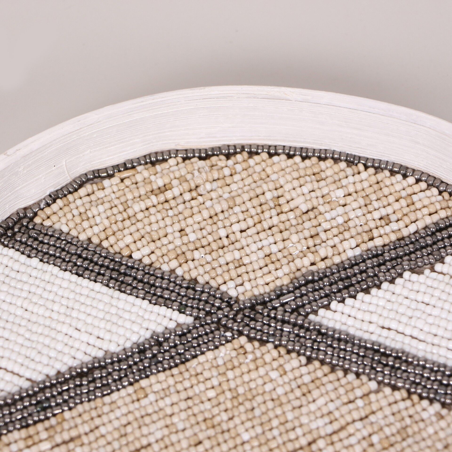 - Doğal Bambunun dış kabuğundan el işçiliği ile örülmüştür. Minik Cam boncuklarla ve Deniz Kabuklarıyla farklı desen ve renklerde bambu tepsinin üzerinde el işçiliği ile dekor verilmiştir.