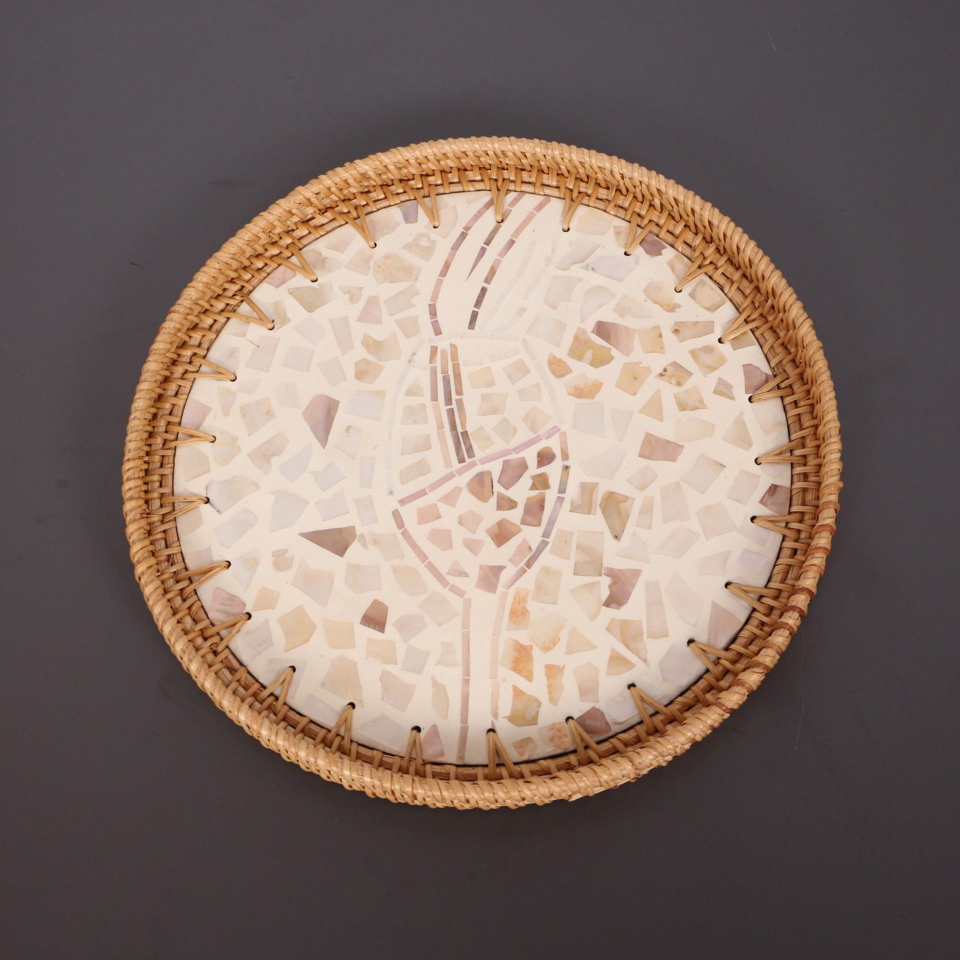 ANİTA 30 X3 CM SEDEFLİ RATTAN TEPSİ & DUVAR DEKORU