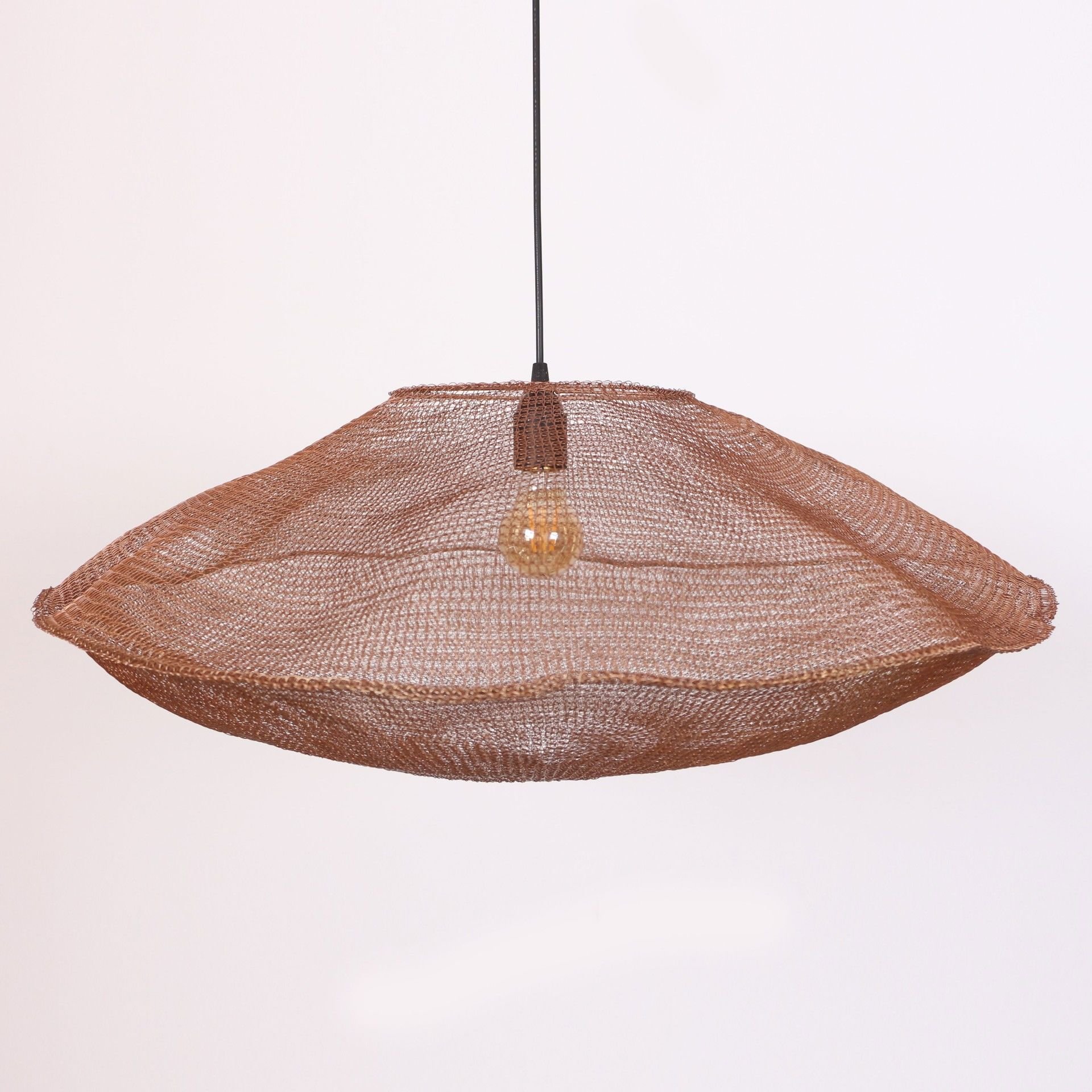 Çap:70x27 cm Toplam Yükseklik: 27 cm (Ürünümüzün kablo hariç, gövde kısmıdır.) Hammadde: Paslanmaz çelik tel Renk: Bakır Rengi Ürünümüz birim olarak fiyatlandırılmıştır. 1 Adet E27 Duylu LED ampul takılabilir. Ürünümüze ampul dahil değildir. Led ampul takılmalıdır diğer flamanlı ve halojen ampuller ürüne zarar verebilir. Resimlerin tüm hakkı firmamıza aittir. İzinsiz Kullanılamaz.