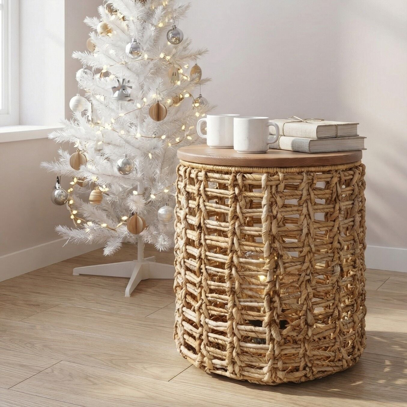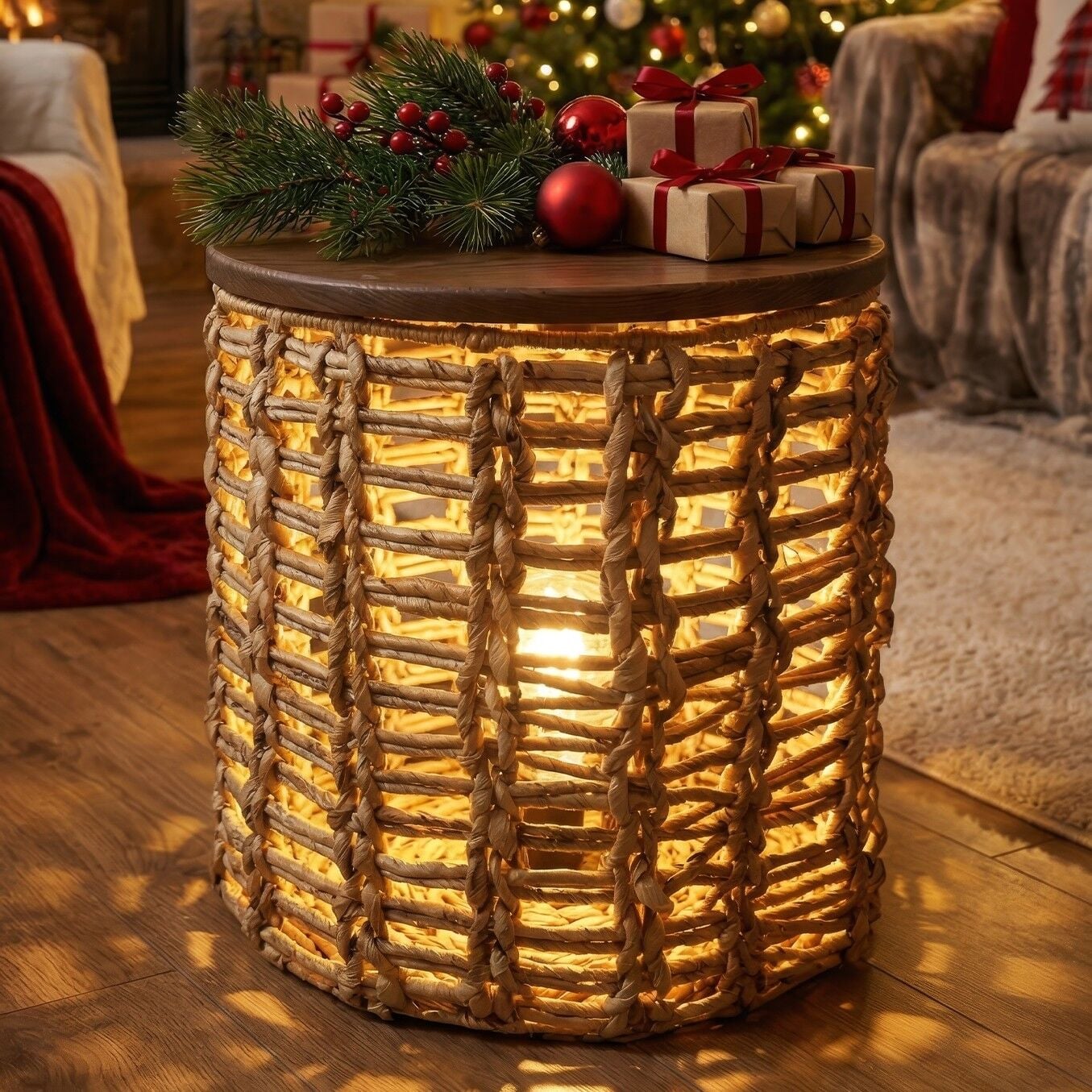 - Ürün Adı: EDİS Aydınlatmalı ve Kapaklı Doğal Abaka Dekorasyon Sepeti ve Sehpa 40x41 cm
