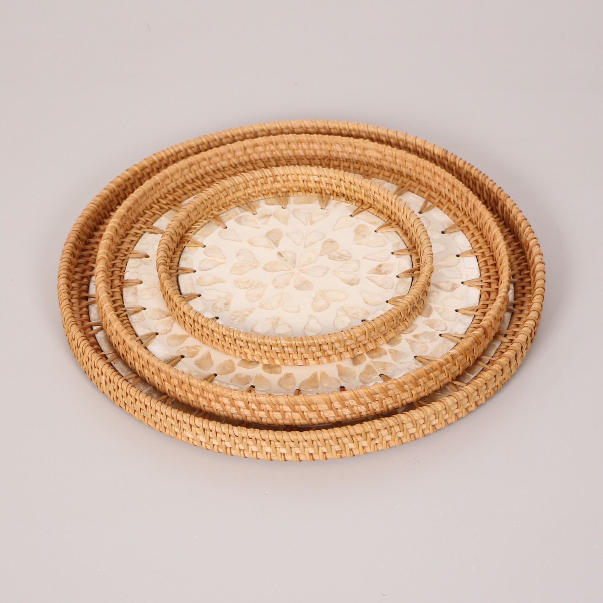 KREMY SEDEFLİ RATTAN TEPSİ & DUVAR DEKORU 35X3 CM