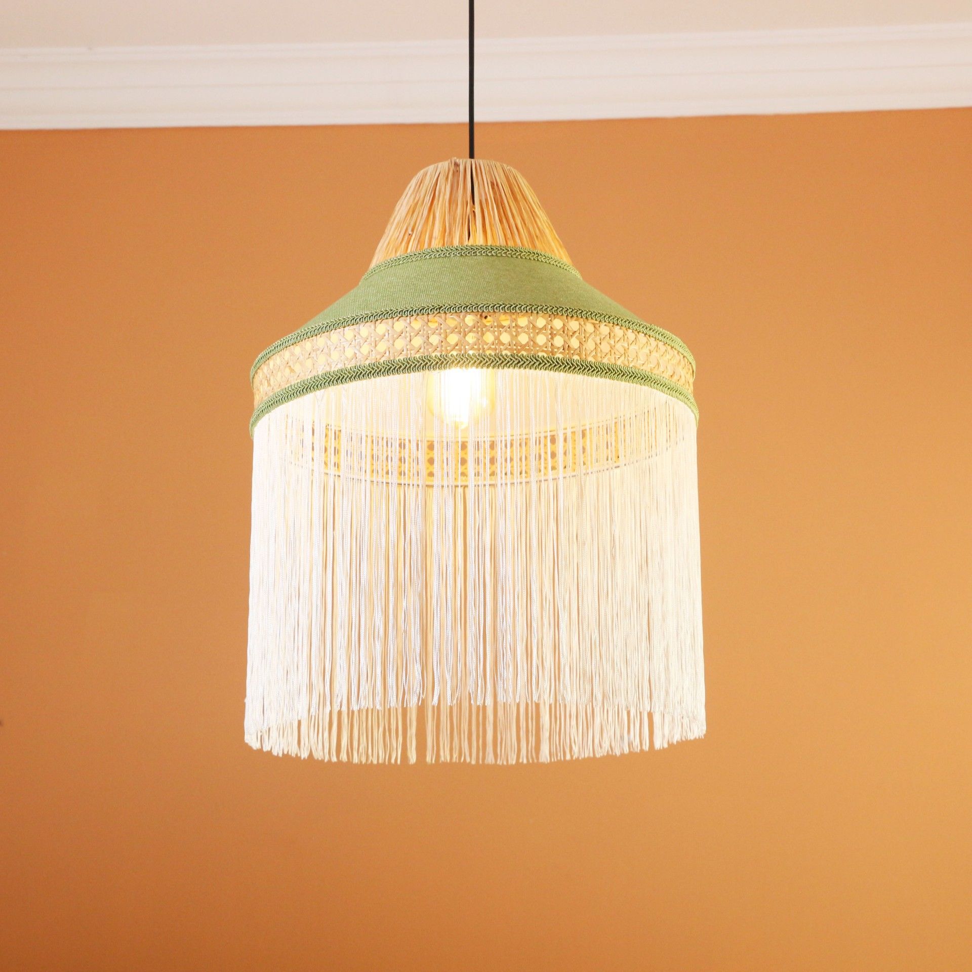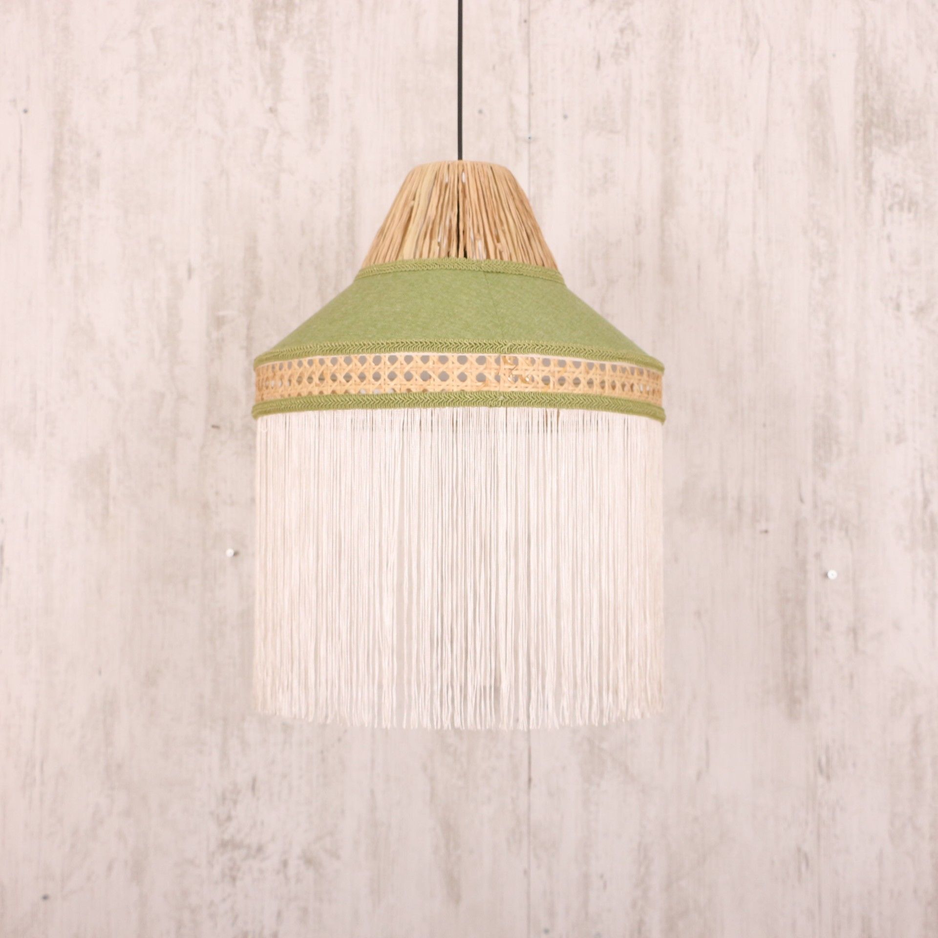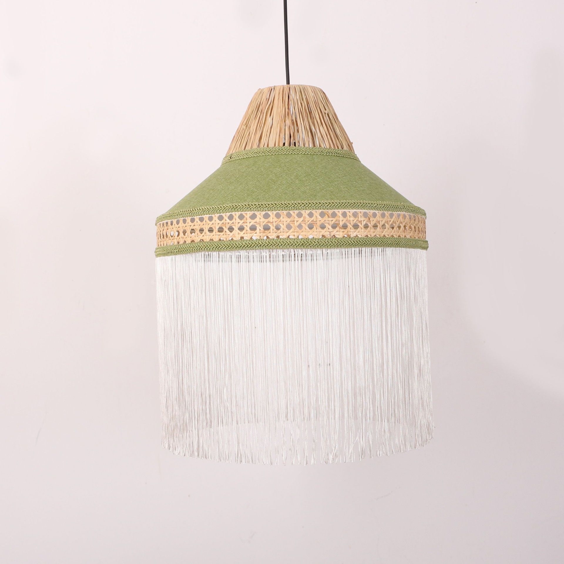 - İmalat Ürünümüz; Işık geçirgenliğiolan abajur kumaşı ve doğal hazeran ve doğal rafya kullanılarak, statik boyalı tel üzerine el işçiliği ile üretilmiştir. İmalat ürünümüzde, bütün detaylar düşünülerek saçak, kadife biyeler, sutaşı ve özel ipler kullanılmıştır.