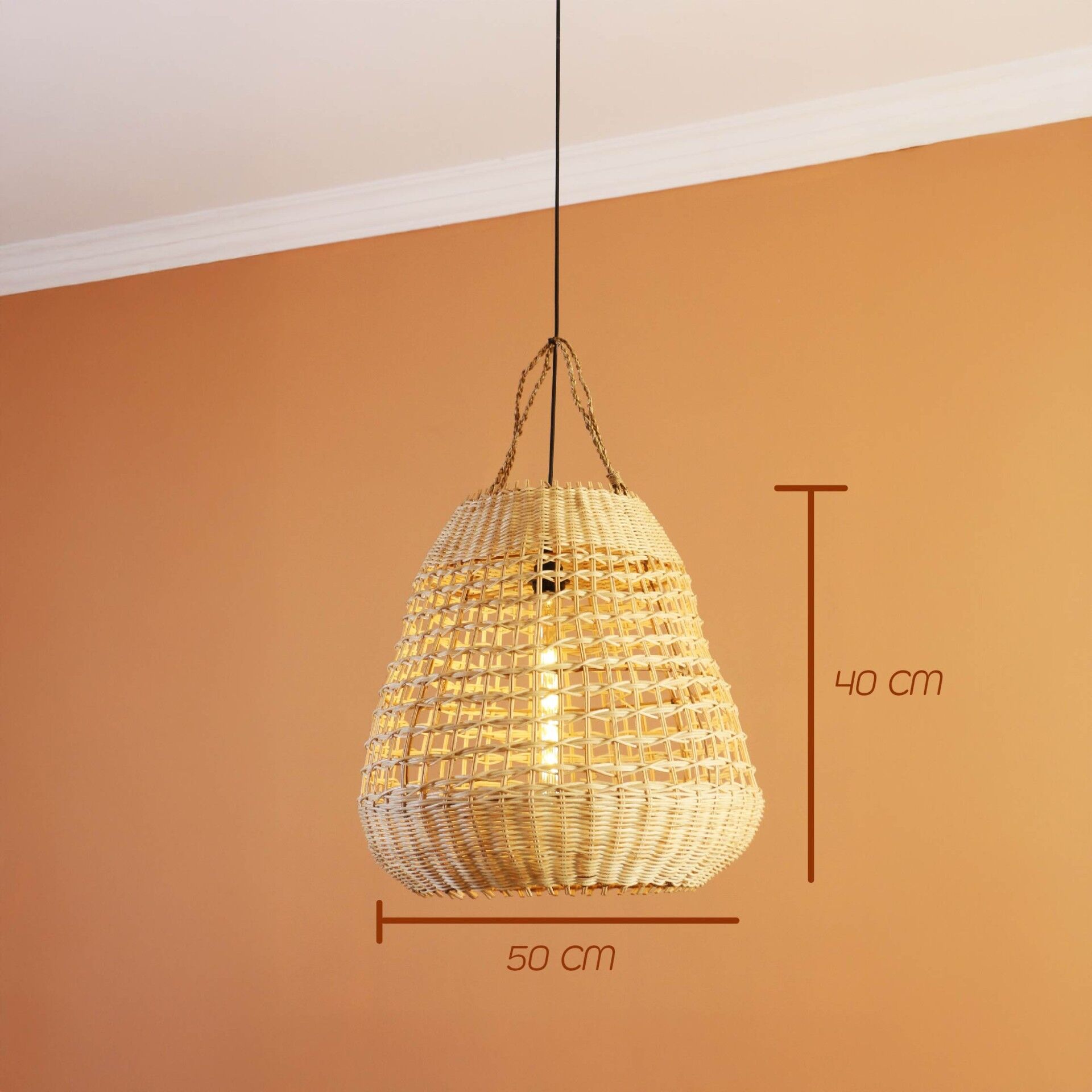 - Ürünlerimiz deforme olmayı engelleyen statik boyalı galvaniz tel kafes üzerine el örmesi tamamen doğal rattan malzemeden imal edilmiştir. Ürünümüz birim olarak fiyatlandırılmıştır. Ürünümüze Ampul dahil değildir.