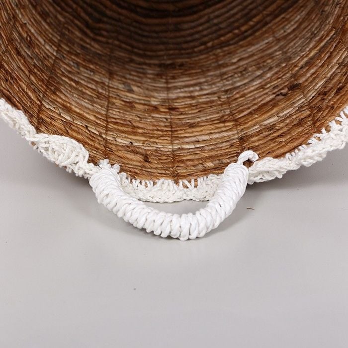 - Ürünümüzün tamamı doğal abaka bitkisinden zanaatkar ustalarımızca, yine abaka yaprağı sarılı tabak şeklinde demir kafes, üzerine pamuk ipliği ile desen verilerek el işçiliği ile üretilmiştir.