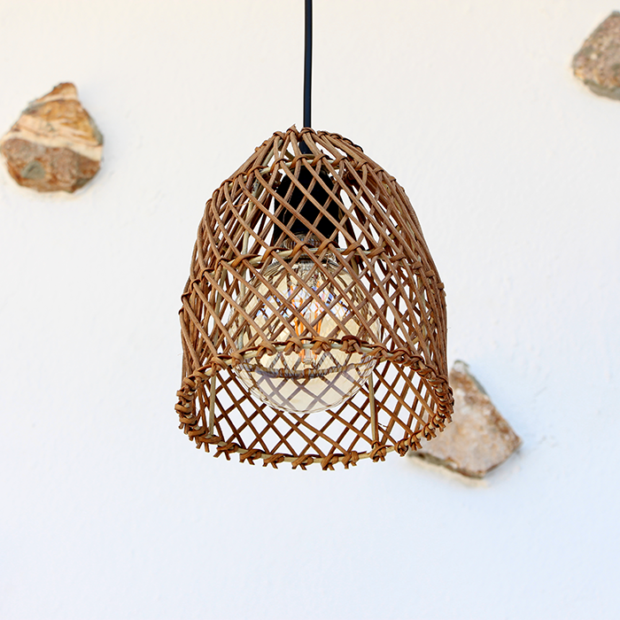 Ürünümüz 16 cm çapında x 18 cm yüksekliğindedir. Ürünlerimiz deforme olmayı engelleyen statik boyalı galvaniz tel kafes üzerine el örmesi tamamen doğal rattan malzemeden imal edilmiştir. Ürünümüz birim olarak fiyatlandırılmıştır. Ürünümüze Ampul dahil değildir.